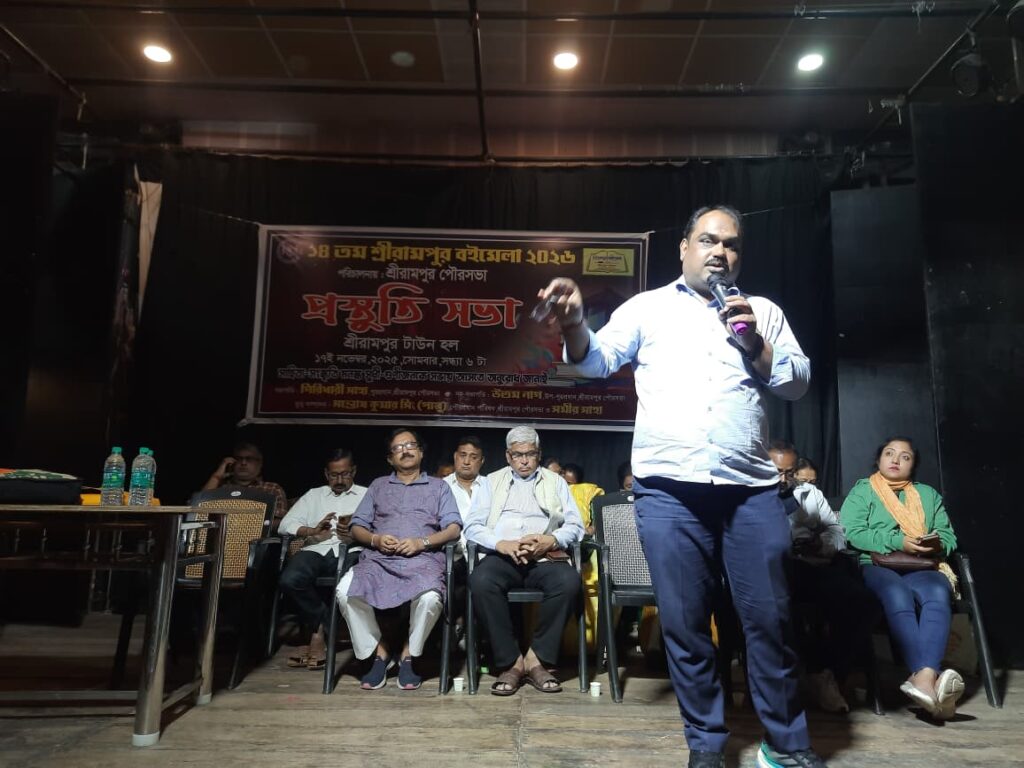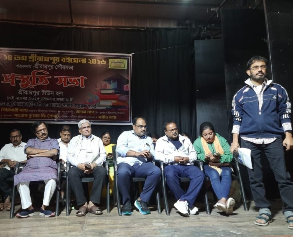 রাখী সাহা: সোমবার শ্রীরামপুর টাউন হলে অনুষ্ঠিত হয়ে গেলো ১৪তম শ্রীরামপুর বইমেলার প্রস্তুতিসভা । শ্রীরামপুর পৌরসভার পরিচালনায় অনুষ্ঠিত এই বইমেলার জন্য সারা বছর অপেক্ষায় থাকে আপামোর শ্রীরামপুরবাসী । বৈঠকে উপস্থিত ছিলেন শ্রীরামপুর পৌরসভার পৌরপ্রধান গিরিধারী সাহা, ভাইস চেয়ারম্যান উত্তম নাগ , সি আই সি সন্তোষ কুমার সিং, পিন্টু নাগ , তিয়াসা মুখার্জী, কবি রামকিশোর ভট্টাচার্যসহ শ্রীরামপুর পৌরসভার প্রায় সকল কাউন্সিলরবৃন্দ এবং শহরের আপামোর সংস্কৃতিপ্রেমী মানুষজন ।